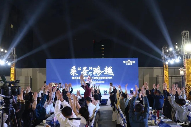 经销商晚宴当日晚6时许,以【乘“圣”跨越】为主题的,BB贝博艾弗森集团第45届国际家具展接待晚宴暨2020年度优秀经销商颁奖盛典,在营销中心四楼景观花园隆重举行,来自全国各地的经销商朋友欢聚一堂,共同分享一场精彩纷呈的晚宴。